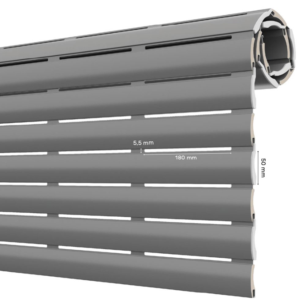 Lea las dimensiones de las lamas de esta persiana enrollable de aluminio aislado.