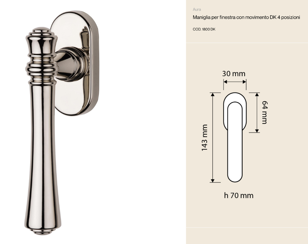 Aura Linea Calì - Manilla de ventana de latón con acabado a elegir