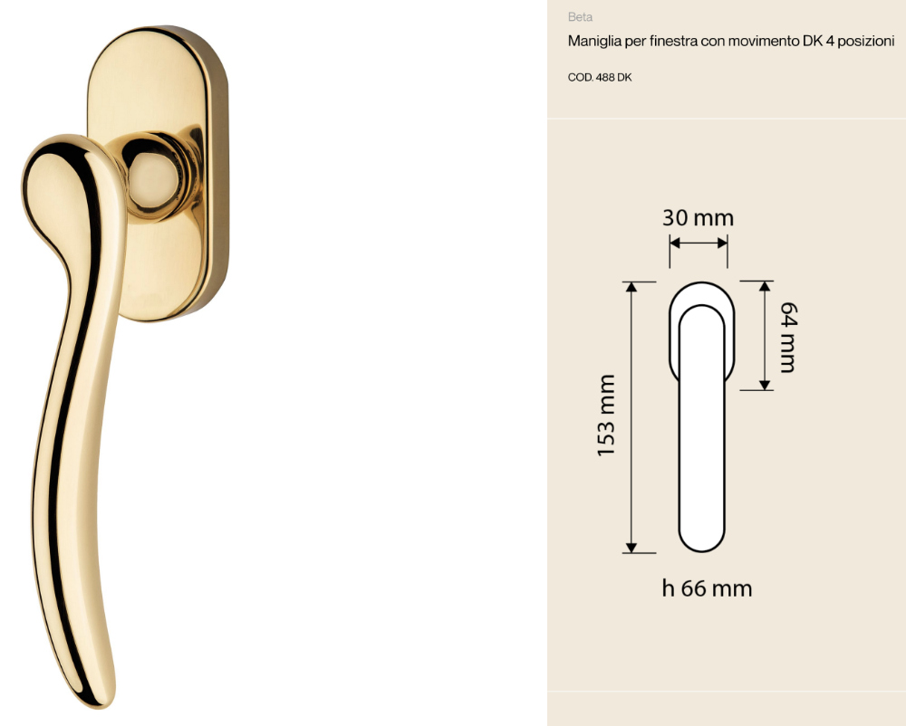 Beta Linea Calì es la manilla ideal para ventanas que combina la elegancia clásica y la funcionalidad moderna, con la calidad artesanal del auténtico Made in Italy.