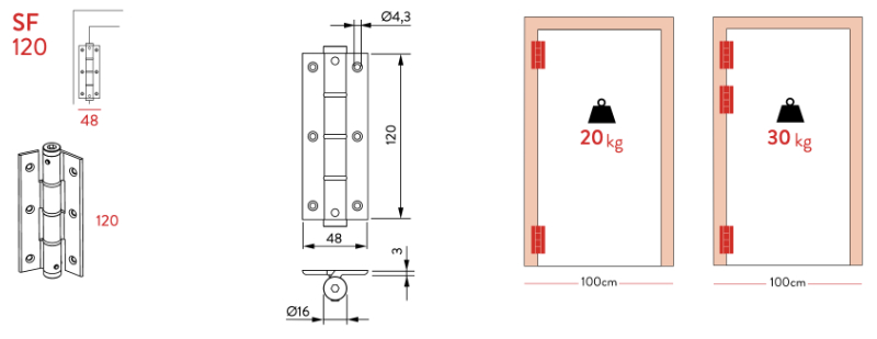 Bisagra Muelle Coplanar Justor SF 120 - Altura 120 mm - 2 Piezas