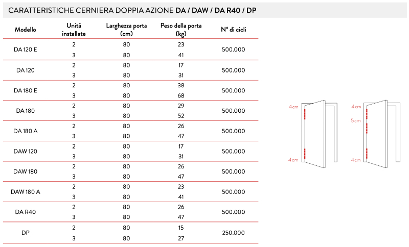 Bisagra Doble Acción Justor DA 120 - Altura 120 mm - 2 Piezas