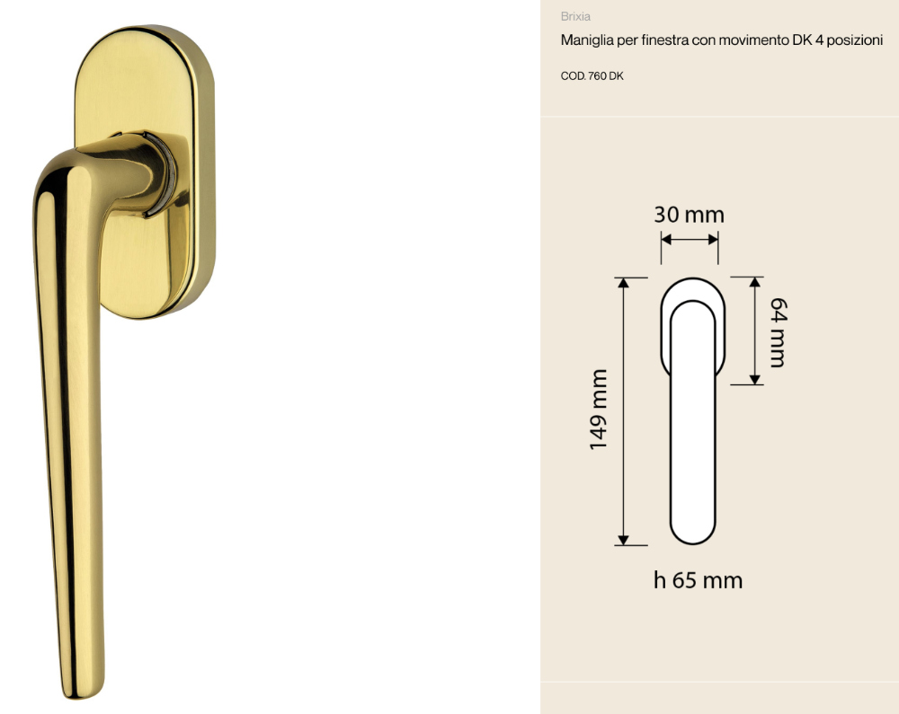 Brixia Linea Calì - Manilla de ventana de latón - Calidad italiana