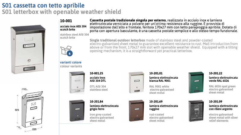 - S01 Silmec está equipado con una puerta basculante, es un buzón simple y al mismo tiempo funcional.