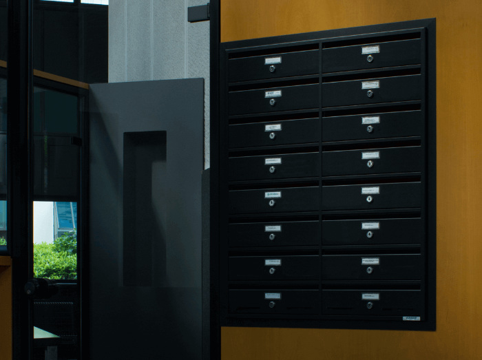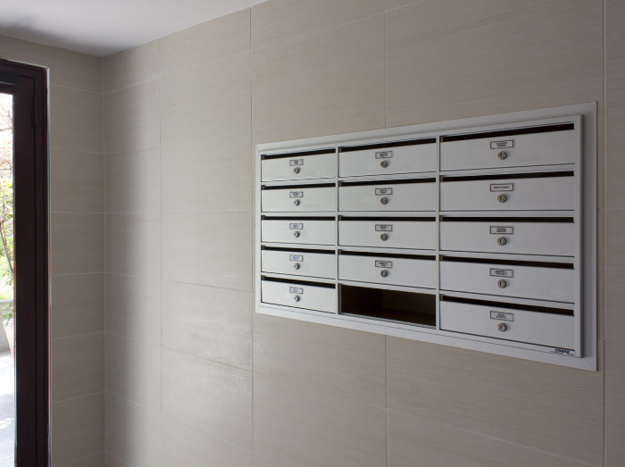 Buzones interiores capaces de transmitir comodidad por un lado y seguridad por el otro, con cantos y perfiles de aluminio extrusionado.