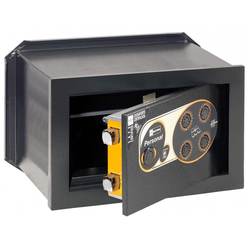 Caja fuerte mecánica de pared Mottura Personal equipada con una cerradura mecánica de combinación de 4 pomos.