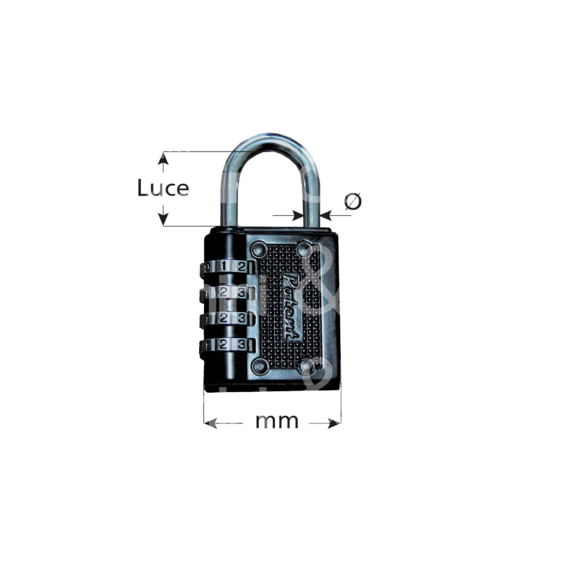combinación de 4 dígitos en acero pintado. Producción italiana bajo la marca Potent.
