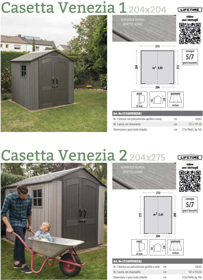 El modelo de casa de PVC Lifetime Losa Venezia se puede fabricar en diferentes tamaños.