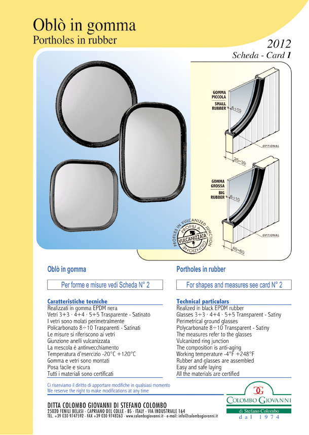 En su planta de Brescia (en Fenili Belasi), la compañía diseña y fabrica productos de Colombo en constante mejora de la calidad. Desde el diseño de estos ojos de buey, el objetivo es lograr la máxima satisfacción del cliente recependone las necesidades precisas. Por esto podemos garantizar la vida y la funcionalidad de estos magníficos ojo de buey.