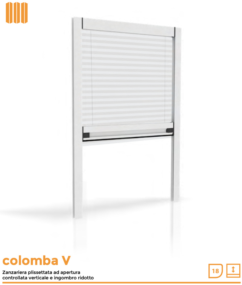La mosquitera plisada para ventanas Colomba V Effezeta System tiene una huella de tan solo 18 mm . La versatilidad de Colomba V Effezeta la convierte en la solución perfecta para espacios reducidos.