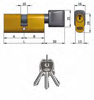 Art.143 / 07 Omec; Cilindro doble con pomo de latón Oval (5 pernos)