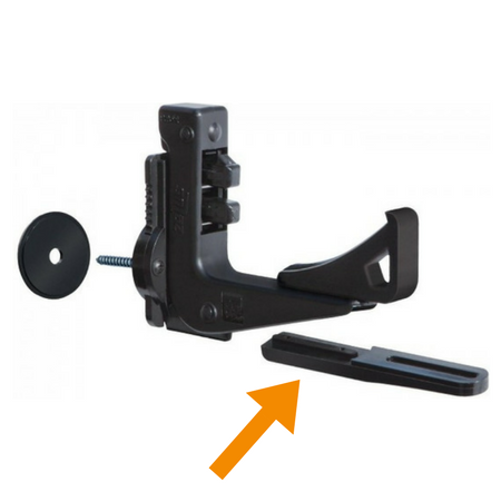 Soporte de extensión en plástico negro. Le permite usar la compuerta de Zelus en puertas de hasta 130 mm de grosor