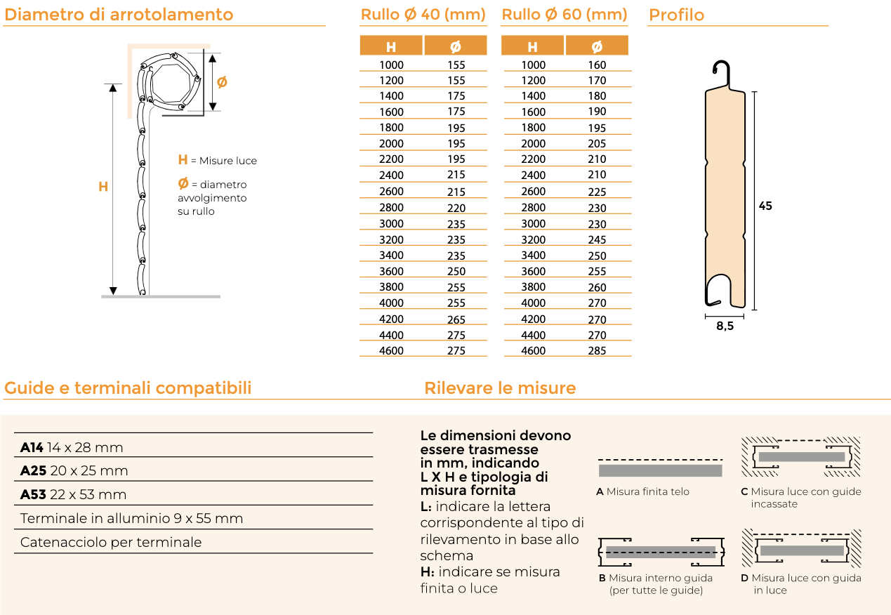 Para elegir el perfil de la persiana (en caso de sustitución) medir la altura de la lama individual sin tener en cuenta el gancho de unión entre las lamas.