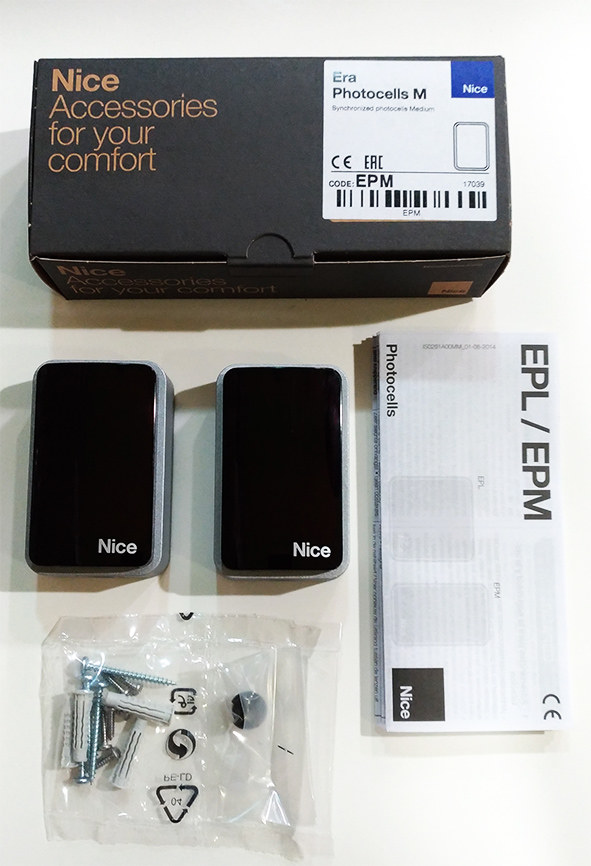 Características técnicas de las fotocélulas Nice EPM