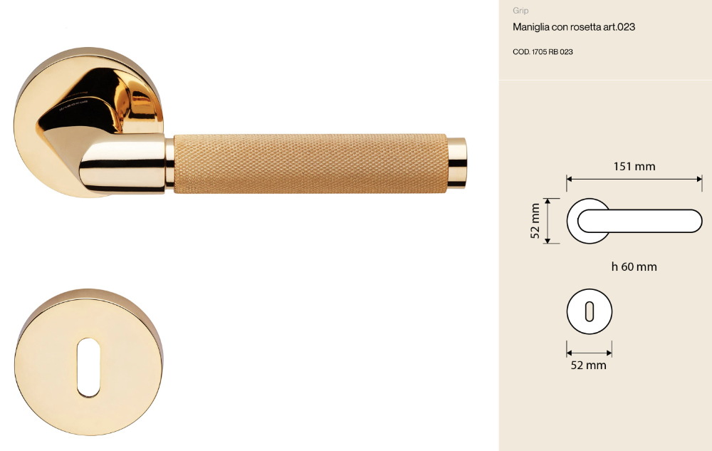 Como todas las manillas de Linea Calì, también la colección Grip está fabricada íntegramente en Italia, en la fábrica de Vobarno (BS), y firmada con la marca grabada que certifica su autenticidad y alta calidad.