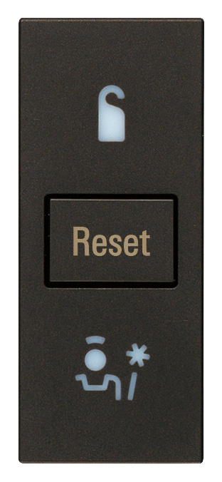 Interruptor 1P 10 AX 250V~ con símbolos “No molestar” y “Hacer habitación” , disponible en diferentes acabados.