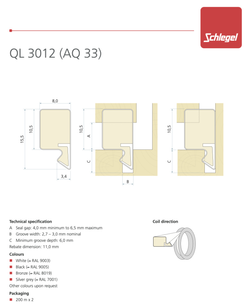 Características del burlete para ventanas Schlegel QL 3012