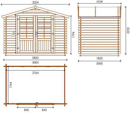 Caseta de jardín de madera Kelly Losa dibujo técnico.