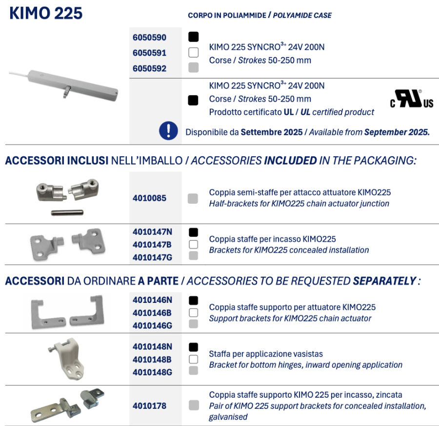 Nota: El KIMO 225 es una mejora respecto al KIMO 202 anterior, ya que ofrece menor velocidad, mayor precisión y tecnología Syncro³+ para la sincronización múltiple de hasta 8 actuadores. También es compatible con el accesorio PGM para programar la fuerza y la velocidad.