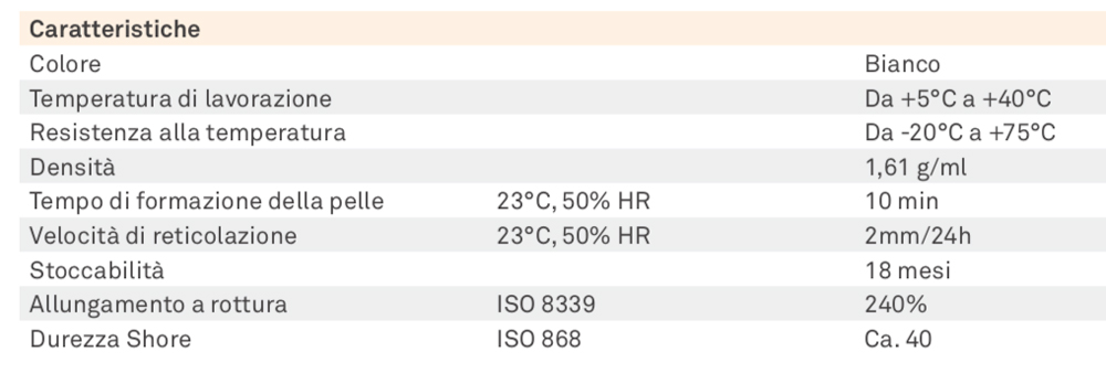 - No es compatible para sellar expuestos constantemente al agua. No compatible con PE, PP, PC, PMMA, PTFE, neopreno, betún.