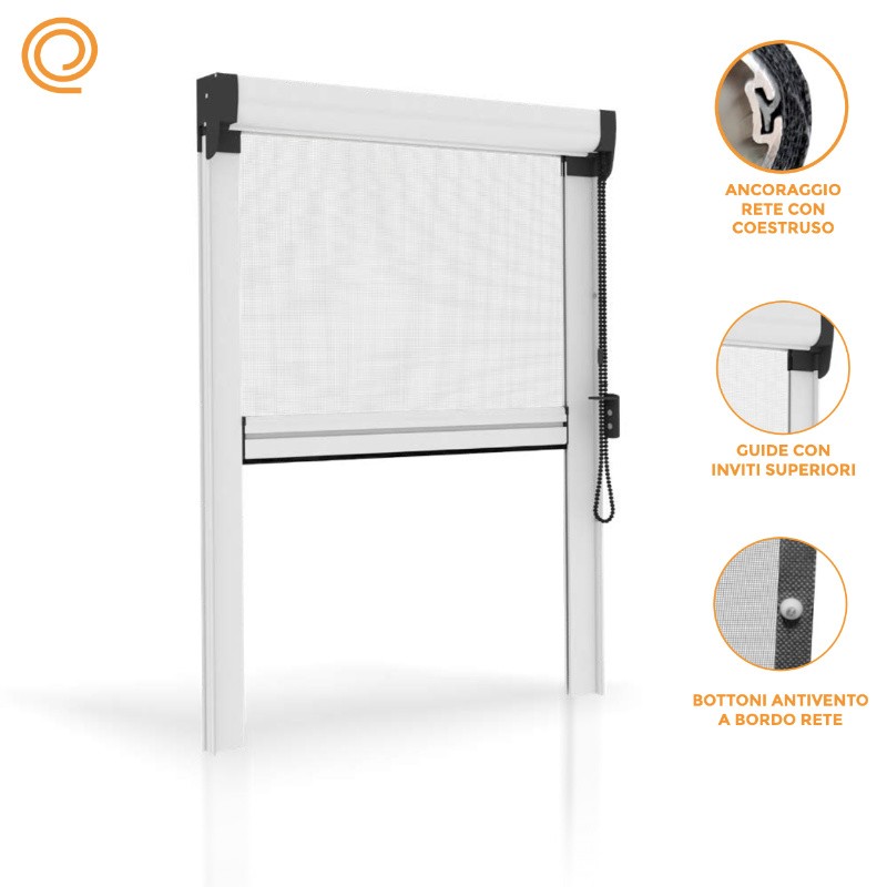 diseñada para resistir las ráfagas de viento . Esta mosquitera para ventanas está equipada con una cadena que le permite enrollarla de manera fácil y segura.