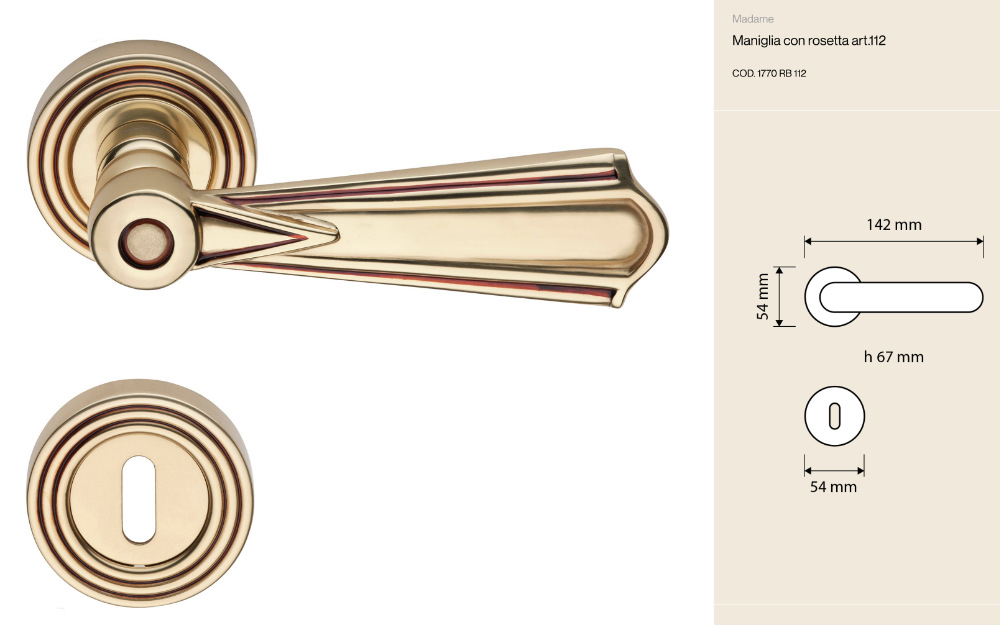 Todas las manillas están fabricadas en Italia , en la fábrica de Vobarno (BS), donde la tradición artesanal y las tecnologías modernas se combinan para garantizar calidad, resistencia y durabilidad en el tiempo.