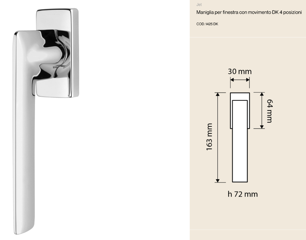 Detalles técnicos de la manilla de ventana Jet Linea Calì