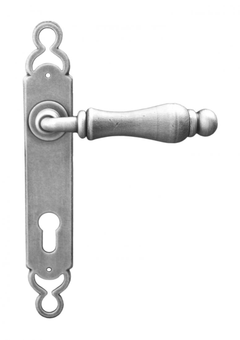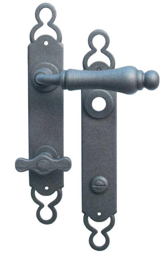 - Manija de puerta sobre placa de hierro forjado.