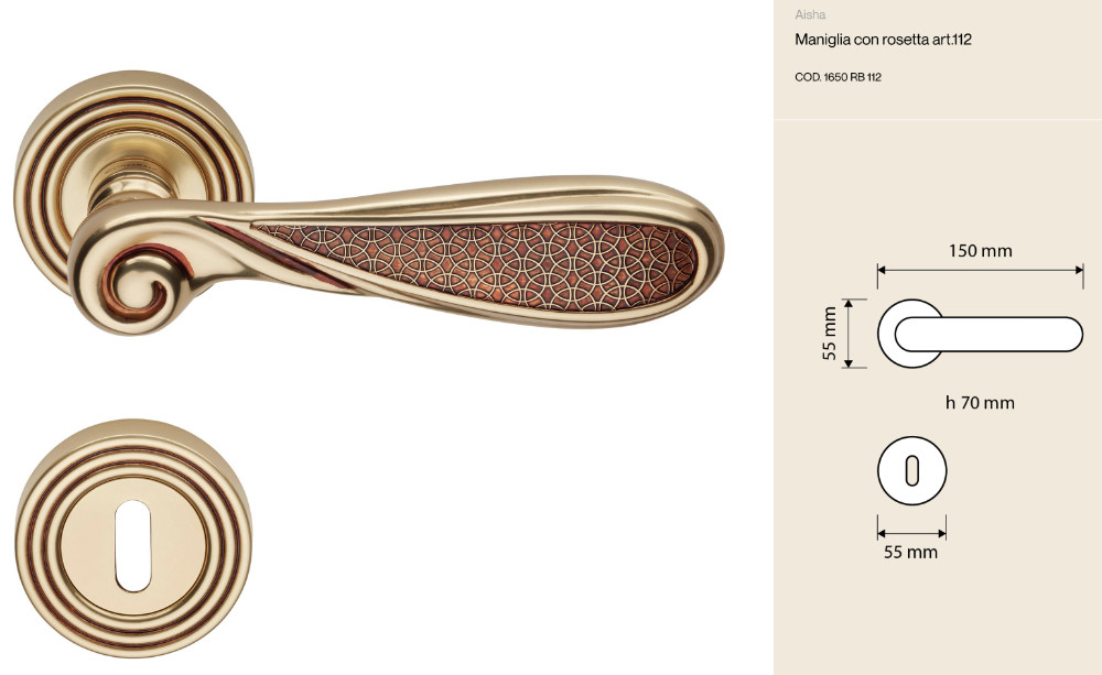 Compra la manilla de puerta Aisha Linea Calì en Windowo: elige su acabado y bocallave y llévate a casa una manilla con encanto árabe y auténtica artesanía italiana.