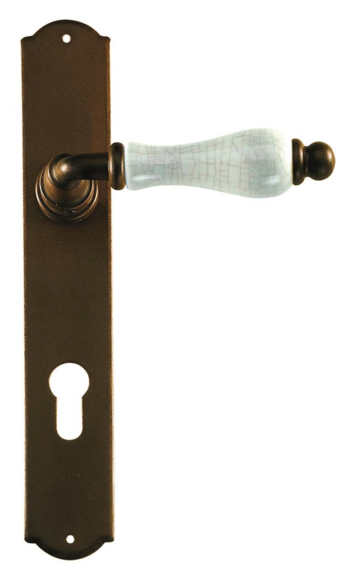 Galbusera de Praga - Tirador de puerta en placa de hierro y porcelana