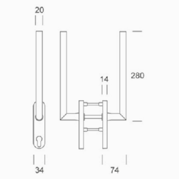 MANGO Ø 20 CON EL PLATO doble plegado 180 ° longitud 130 mm, una anchura de 20 mm.