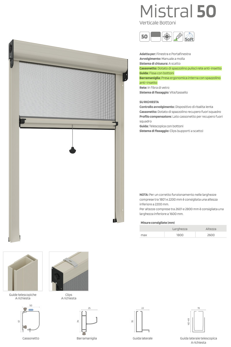 Mistral 50 Botones Verticales - Mosquitera Primavera Económica - Officine Rami