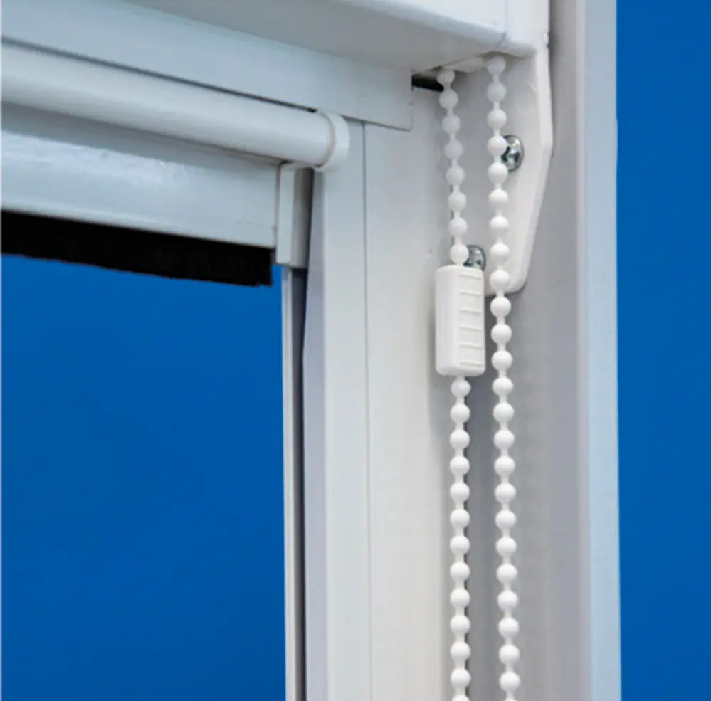 mando de cadena a la que se le añade un muelle que permite mantener la lona tensada. El resorte simplifica el movimiento de la mosquitera, que es rápido y suave.