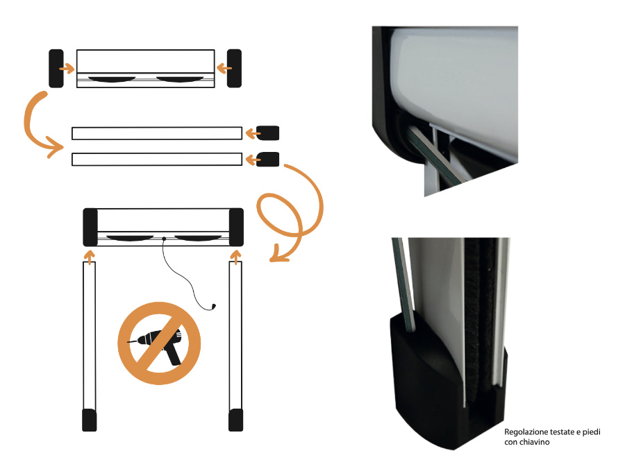 - Versión : vertical con disposición para instalación sin agujeros ;