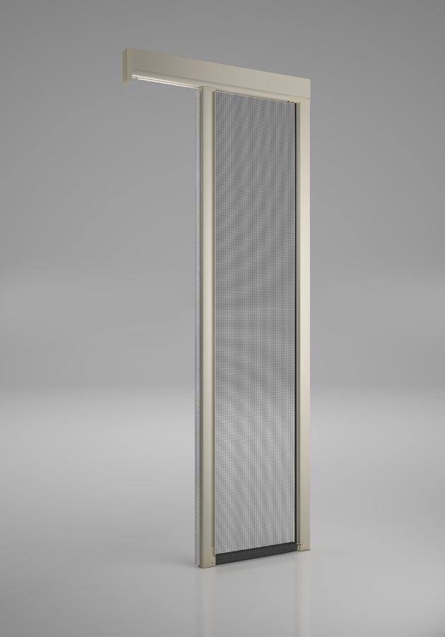 Fácil de instalar, también cabe en espacios que no son perfectamente cuadrados. La predisposición eléctrica para las mosquiteras debe estar prevista en el lateral de la caja (una por puerta).