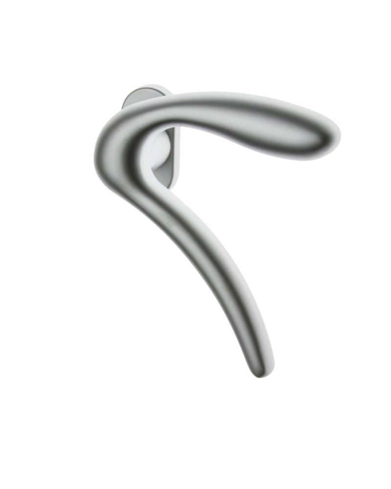 Par de manijas, par de rosetas, pequeñas piezas y accesorios para el montaje y, si lo desea, también un par de cilindros respiraderos.