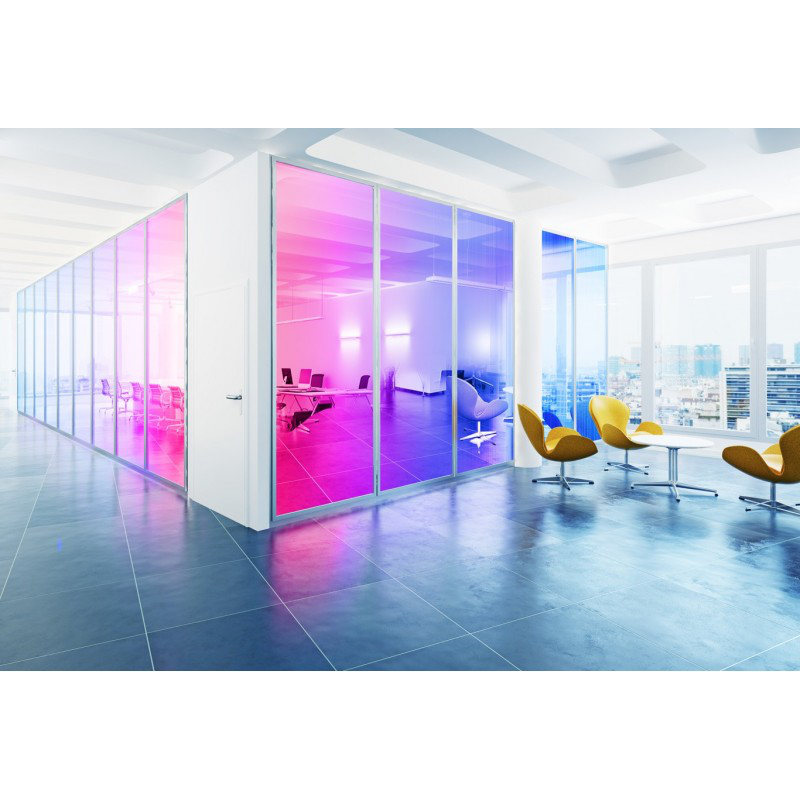El film Reflectiv es una solución decorativa innovadora que no sólo transforma la luz natural en un juego de reflejos de colores, que van del azul al rojo, sino que también aporta una atmósfera única y moderna a cualquier ambiente. Esta película destaca por su capacidad de crear diferentes matices y tonalidades según el ángulo desde el que se observe, aportando una nueva dimensión de estilo y diseño a cada espacio.