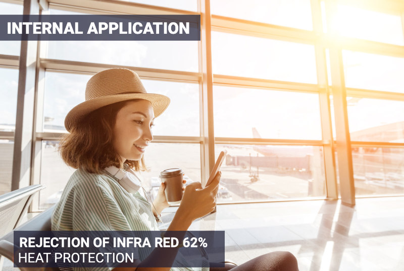 Reflectiv IR 50 es una película para ventanas ideal para protección contra el calor con un 52% de protección infrarroja para instalación interna.