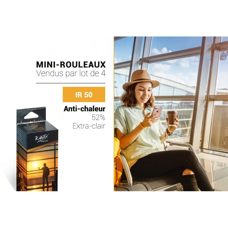 La película de protección solar IR 50 está diseñada para aplicarse a ventanas de vidrio para reducir el calor y el deslumbramiento del sol. La mejora del confort en las habitaciones soleadas es espectacular. Se trata de una verdadera mejora del confort y permite un ahorro energético ligado al uso del aire acondicionado. Color muy claro.