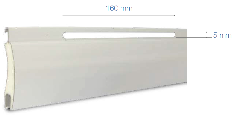 Gracias a sus ranuras de 160 mm de largo, ROLL 50 AIR Pasini es capaz de ofrecer una mayor luminosidad y ventilación de las estancias en comparación con las persianas más habituales (las infiltraciones de luz con las contraventanas bajadas se consideran inherentes a las especificaciones constructivas de la manta).