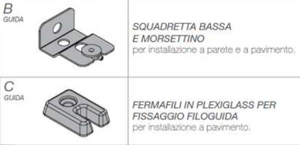 guía tipo B o C para instalación en la pared o en el piso.