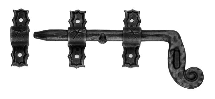 cerrojo de hierro forjado es ideal para enriquecer puertas, contraventanas o portones de madera, en contextos rurales, de época o campestres.