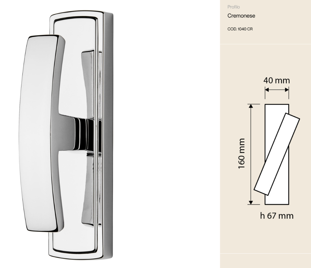 Desde 1986, Linea Calì crea manillas Cremonese que combinan diseño y funcionalidad , transformando un simple gesto en una experiencia de elegancia cotidiana. Las manillas Cremonese son manillas para ventanas con movimiento de palanca vertical que permiten bloquear y desbloquear la hoja con un sistema práctico y fiable.