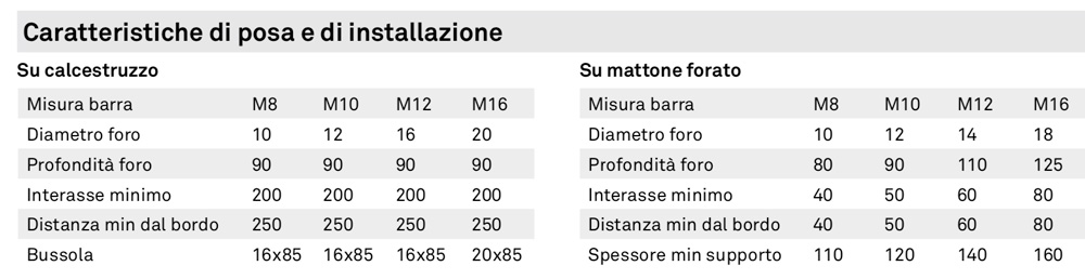 Taladre la pared (con un poco de diámetro adecuado según la tabla siguiente) y limpie cuidadosamente el orificio con cepillos metálicos adecuados.