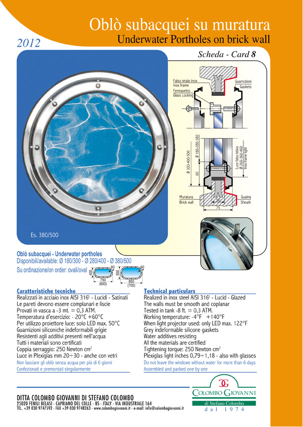 En su planta de Brescia (en Fenili Belasi), la compañía diseña y fabrica productos de Colombo en constante mejora de la calidad. Desde el diseño de estos ojos de buey, el objetivo es lograr la máxima satisfacción del cliente recependone las necesidades precisas. Por esto podemos garantizar la vida y la funcionalidad de estos magníficos ojo de buey.