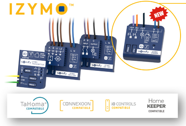 - Izymo es la gama de micromódulos inalámbricos desarrollada por Somfy que utiliza el protocolo io-homecontrol ;