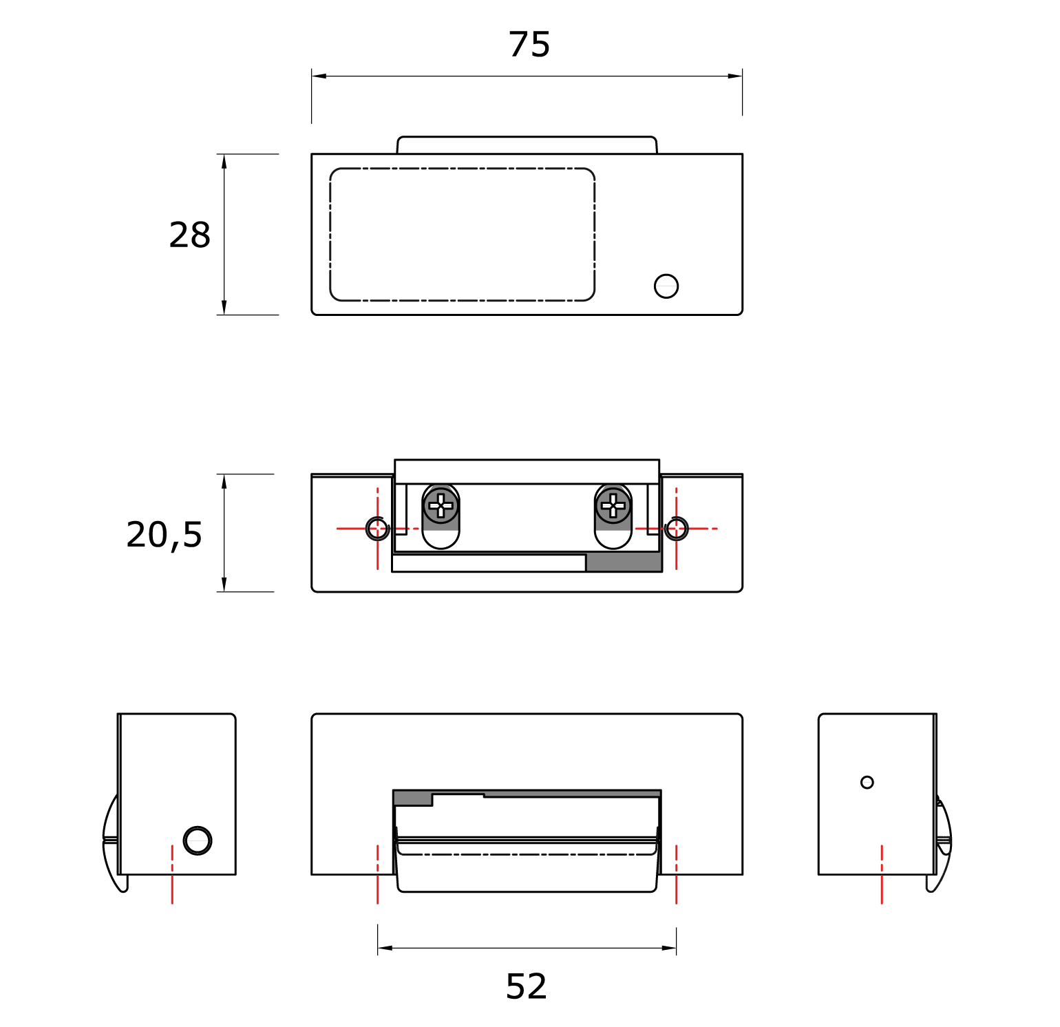 - Dimensiones (L x W x D): 75 x 20,5 x 28 mm;