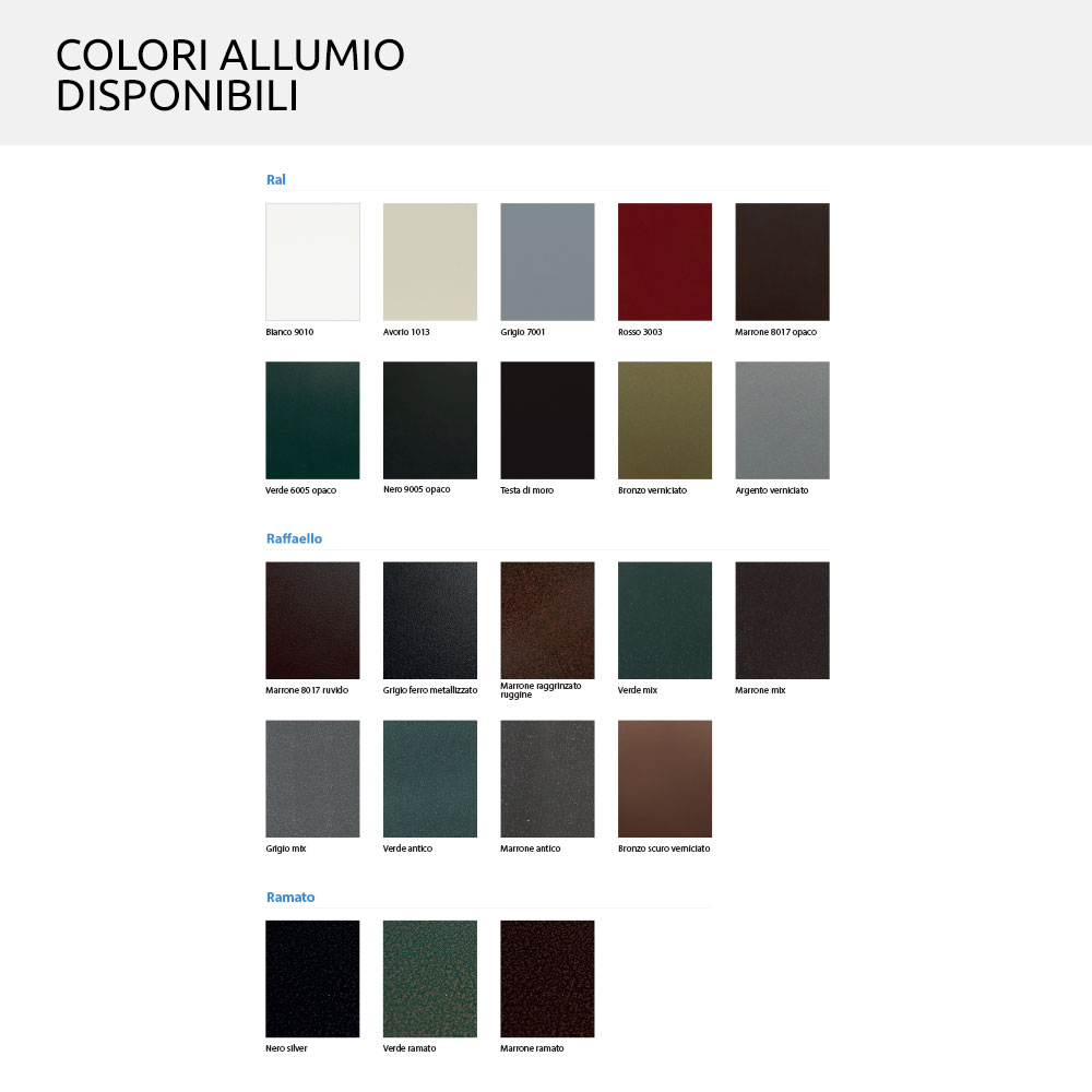Elija entre una amplia gama de colores de aluminio para poder adaptar el producto a cada entorno y necesidad.
