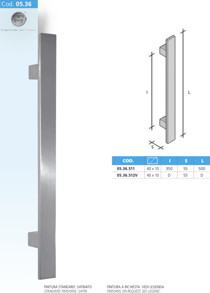Manillar rectangular 40x10 - Código MPM 05.36 con distancia entre ejes 350 mm.