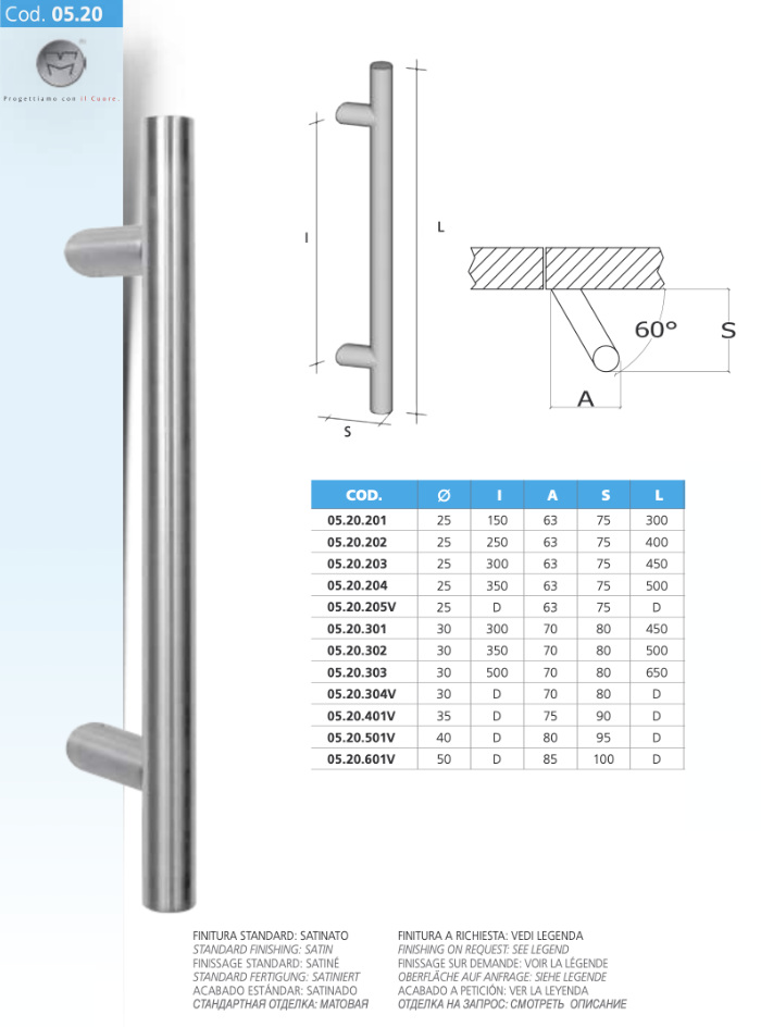 Características tirador de puerta en acero inoxidable MPM 05.20