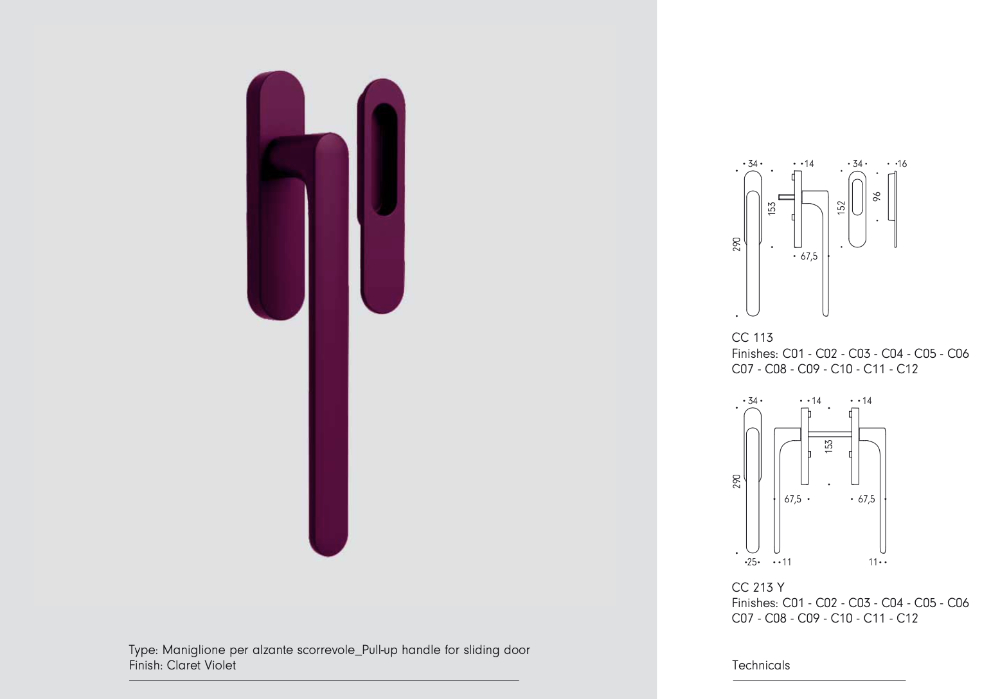 El tirador elevable-corredero COLOMBO DESIGN MOOD está pensado para quienes desean combinar funcionalidad, diseño y personalización del color .